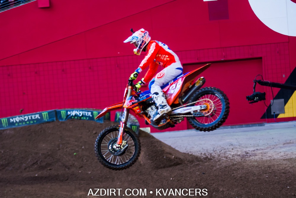The lap times are in the books and we have a couple bow outs. Jeremy Martin in the 250s and Weston Peick in the 450s crashed out. Justin Hill took the top spot in the 250s while Blake Baggett was quickest in 450s. Track is getting faster and mistakes will be costly tonight. Check out the qualifying action!
