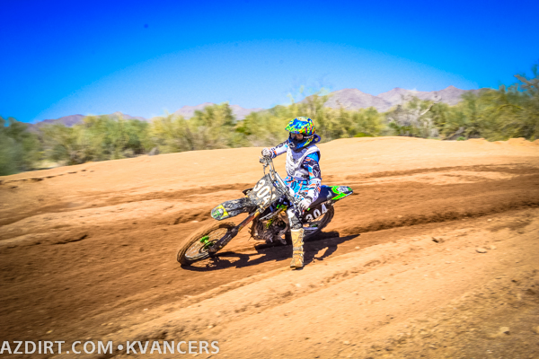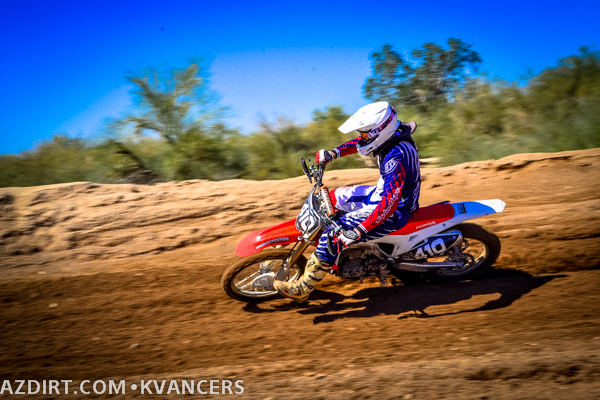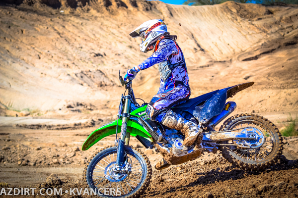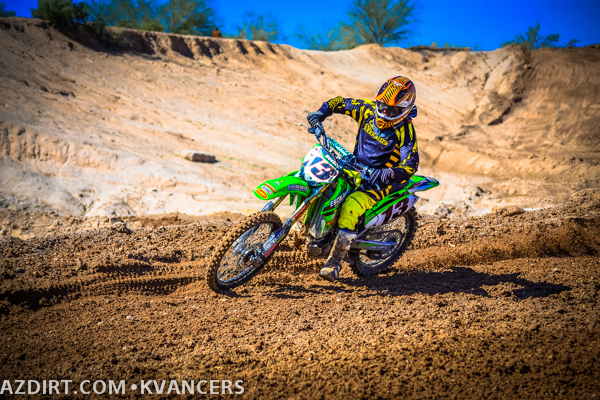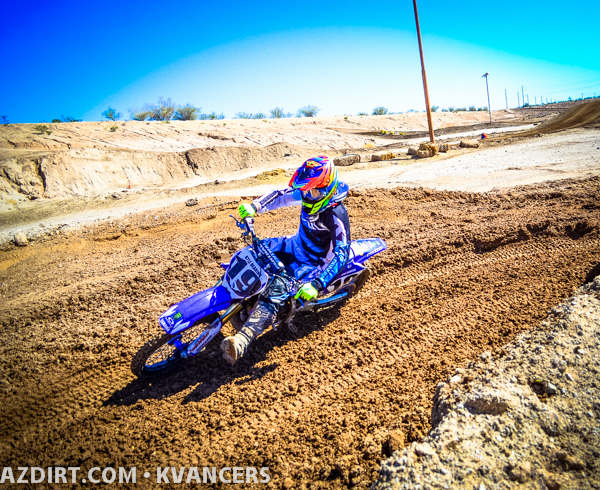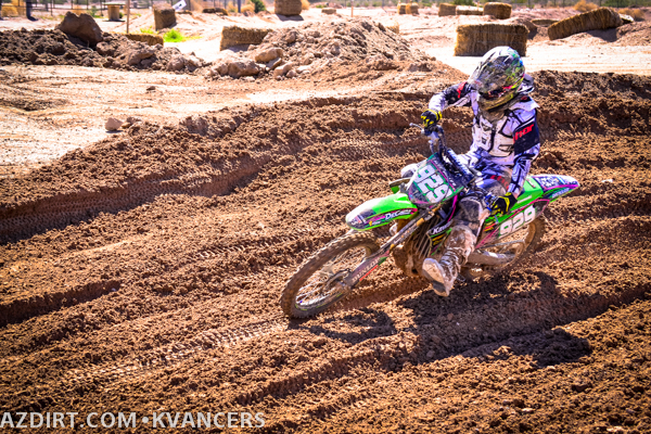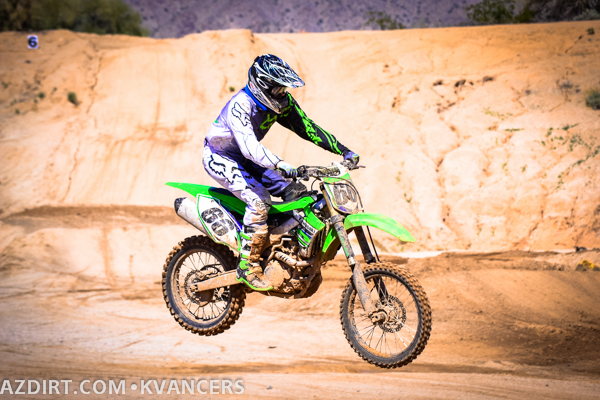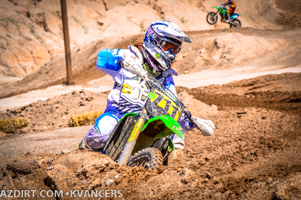 Austin Zamback a bit late on the jump while Connor Giardina gets the holeshot